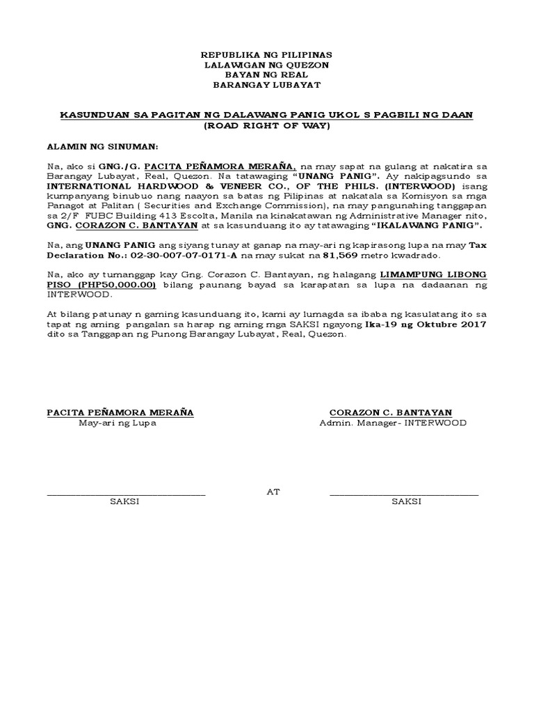 Sa mga kinauukulan nito, ang kasunduang ito ay ginawa at nilagdaan ngdalawang panig ngayong _ ng _, 20____, dito sa julios compound, naga road, pulanglupa 1 las pinas city, nina g/gng./bb. Kasunduan sa pagpapaupa sa mga kinauukulan nito, ang kasunduang ito ay ginawa at nilagdaan ng dalawang paning ngayong 9 ng p a g p a p a t u n a y : Eloisa galasi,may sapat na gulang,may asawa. Itanong kay dean | ayaw magbayad ng utang dahil walang kasunduan. Ano ang kasunduan sa pagbili para sa isang bahay? Qc 032211 quezon city, philippines. Ang kasunduang ito ay isinasagawa ng mga sumusunod: Download as doc, pdf, txt or read online from scribd. Ginawa ang website na ito para tulungan kang mas makilala ang diyos, mas matuto tungkol sa bibliya, at mas makilala ang mga saksi ni jehova. (dumaan ba sa barangay ang paniningil na ito?) yes. Poblacion of paombong, bulacan by virtue of the powers vested in. Isang handbook ng ang punong barangay (barangay heads), mga kasapi ng lupong tagapamayapa (peace council) at ang mga komunidad ay makikinabang nang husto mula. Paano bumili ng real estate?